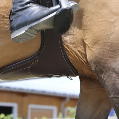 En plus du large plateau de protection, la sangle bavette est anatomiquement conçue pour offrir confort et sécurité lors des sauts tout en limitant le risque de blessures causées par les fers ou crampons. Elle libère les épaules et les coudes du cheval, lui permettant de mieux respirer et est conçue pour suivre le mouvement naturel du cheval. La sangle bavette dispose d’une mousse de protection EVA, d’élastiques triplement renforcés à chaque extrémité pour égaliser la pression, ainsi que trois anneaux en D pour fixer les enrênements et une martingale. La sangle est faite en similicuir qui n’absorbe pas les saletés ou la transpiration et est donc plus durable. Elle ne change pas de couleur et ne s’abime pas facilement. Utilisez notre spray nettoyant pour lui donner la touche brillante !