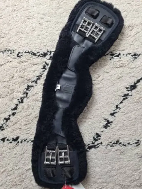 - Pour les chevaux plus „ronds“ à dos court, cage thoracique large et poitrail étroit. Grâce à sa forme particulière, la sangle suit bien le galbe des côtes, ce qui l’empêche de glisser vers l‘avant.