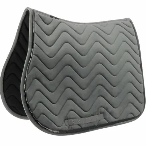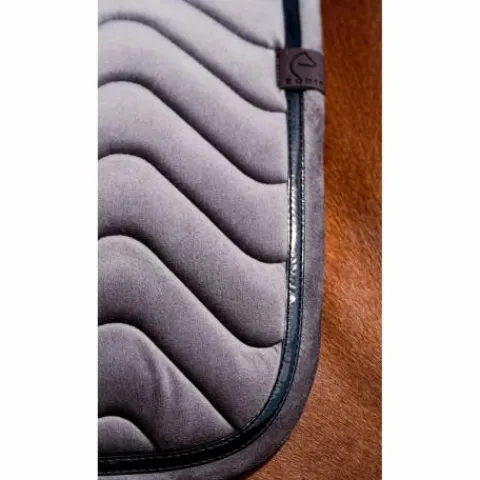Tapis de selle EQUITHÈME Glossy Gris – velours chic, respirant et confortable pour un look sobre et élégant.