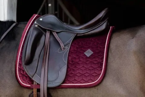 Le tapis de selle Saddle Pad Velvet très élégant avec son effet velours et son passepoil à double torsion. Ce tapis est conçu pour le dressage et offre un excellent amorti entre le dos du cheval et la selle, tout en protégeant contre les frottements. Le tapis de selle n’a pas de sangle gênante pour attacher la selle, seulement une sangle en nylon pour la sangle.
