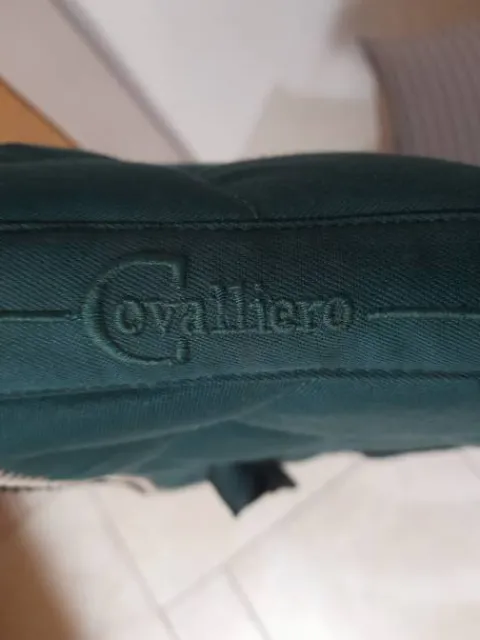 Tapis équitation en trés bon état. Taille cheval coupe cso. Couleurs vert sapin avec une cordelette blanche et noir.