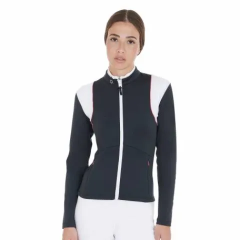 Veste femme ajustée en tissu technique avec fermeture éclair avant. Les inserts en tissu perforé rendent le vêtement extrêmement respirant et frais.
