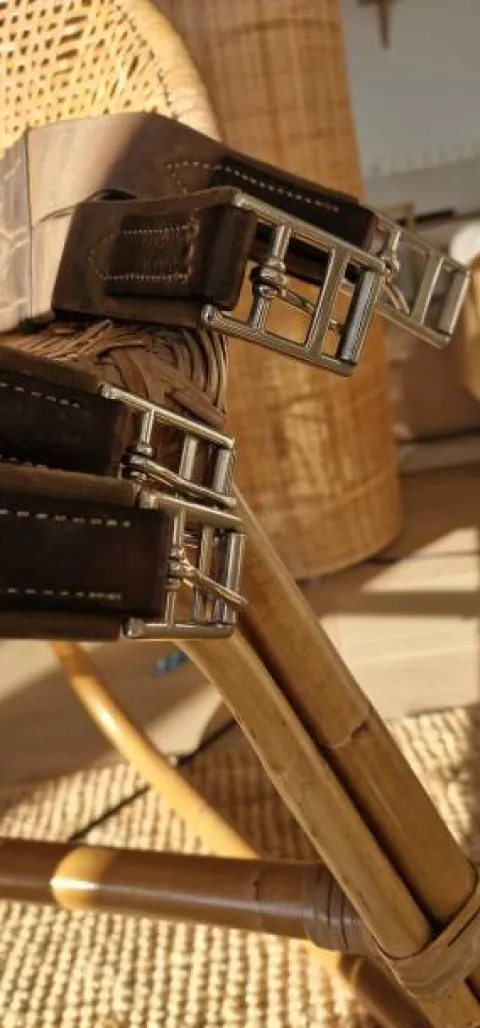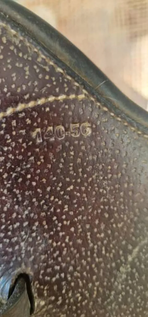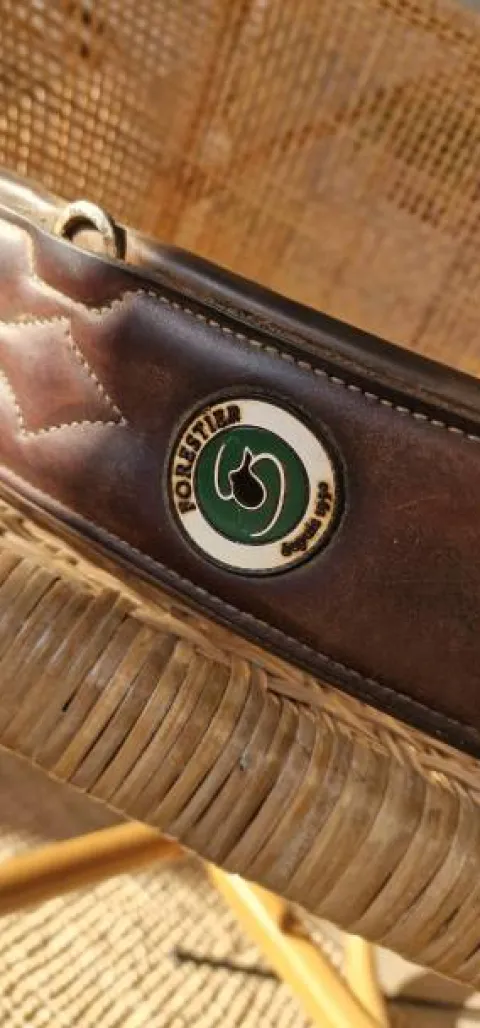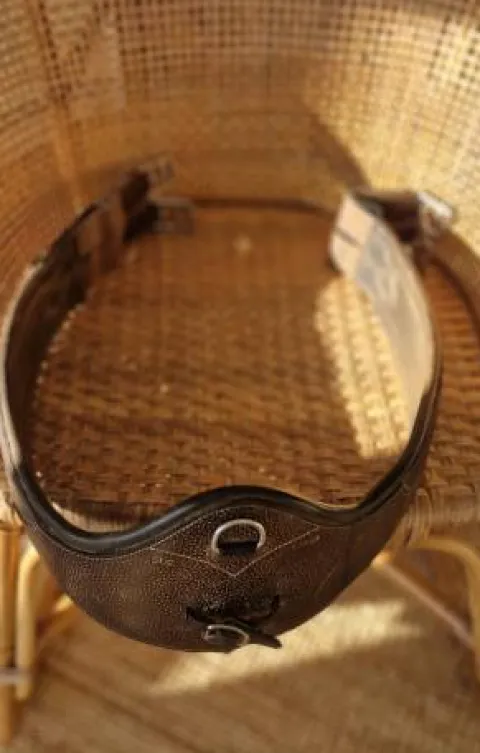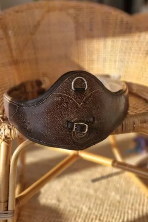 Sangle bavette longue en cuir havane, idéal saut obstacle. En bon état. Taille : 140 – 56.