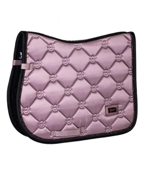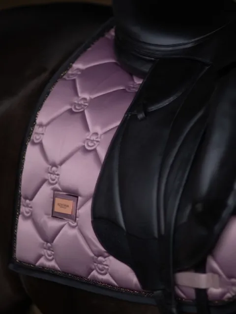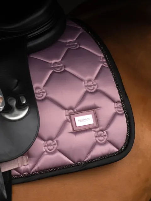 Tapis de selle élégant en rose et avec des détails noir et rose.