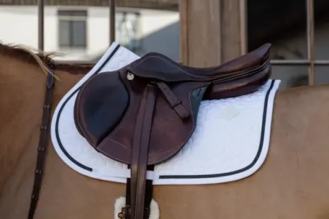 Ce tapis de selle possède un matelassage étoile unique ainsi qu’un liseré pailleté. Il comporte un logo en cuir subtil, tout en offrant suffisamment d’espace pour broder le tapis de selle si nécessaire.