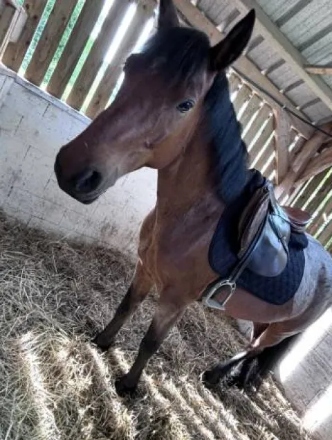 Tapis de selle réversible (un côté noir, l’autre bordeaux) :