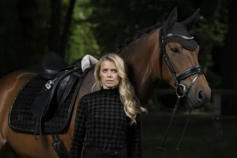 Le tapis Velvet Stamp Essence 2022 de la marque Eskadron allie esthétique et performance. Conçu en velours avec une impression pied de poule, il apporte une touche de sophistication à votre équipement équestre tout en offrant un confort optimal pour votre cheval.