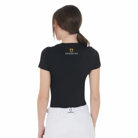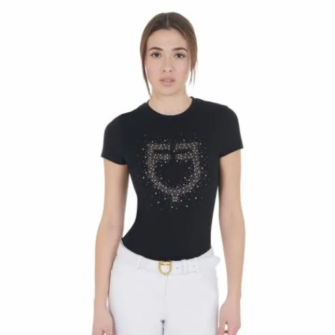 - Tee-shirt femme EQUESTRO coupe slim avec le logo Equestro en strass rosegold et blanc, manches courtes en coton doux de haute qualité.