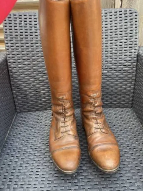 Bottes d’équitation cuir Ferro Di Cavallo taille 37 avec ajout d’une bande élastique sur la fermeture éclair (spécial large mollet).
