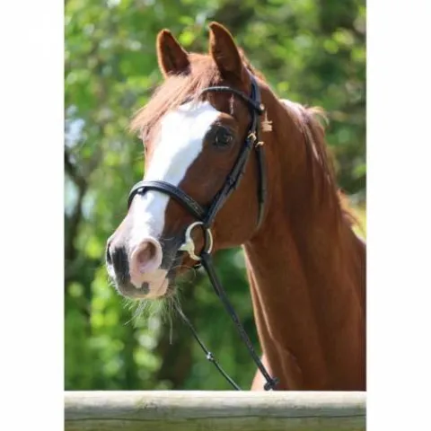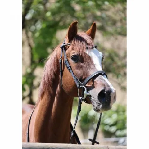 Bridon marron foncé avec galon noir pour les concours équestres