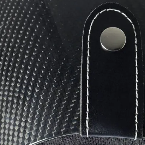 - Matière : fibres de carbones; visière en cuir lanières d’oreilles en cuir; doublure cool max
