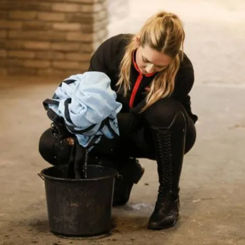 - D’utilisation très simple, il suffit d’immerger la chemise quelques secondes dans de l’eau et de l’essorer avant de la mettre sur le cheval pour activer sa technologie.