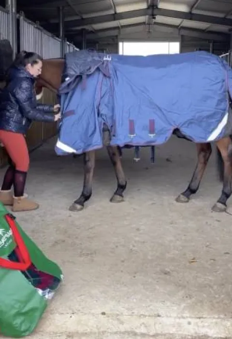 Découpes leg arches, bandes réfléchissantes, cordelette de queue nettoyable d’un coup d’éponge, attaches pour la doublure, trois sursangles croisées sécurisées, une doublure lustrante en polyester