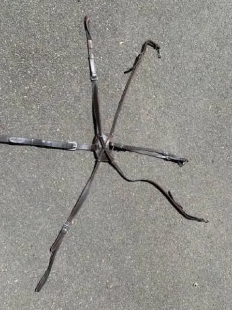 Martinguale avec collier de chasse croisé marron de la marque Dyon, taille poney, en très bon état.