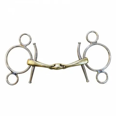 - Conseil d’utilisation : Ce mors peut être utilisé avec des rênes attachées de manière fixe sur l’anneau du bas, avec des alliances ou avec deux paires de rênes