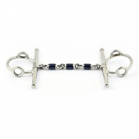 Ce mors nécessite des montants spéciaux et peut être utilisé en direct, avec alliances ou en quatre rênes, ce qui le rend polyvalent et adapté à différents types de bride. Son canon fin accentue son action, en évitant au cheval de prendre trop de contact et en permettant un appui sur les premières brisures. Disponible en taille 125 et 135, le mors releveur à aiguilles à boules Blue Steel convient à la plupart des chevaux. Canon 12 mm et Anneaux 50 mm