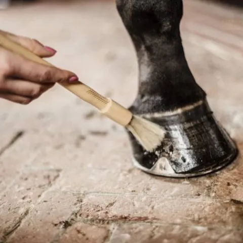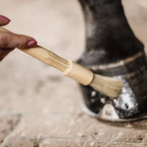 Ce pinceau verni en bois d’hévéa est parfait pour graisser ou huiler les sabots de votre cheval ! Nous avons utilisé des fibres naturelles pour être certains que la brosse soit solide et résistante. Elle est donc idéale pour les sabots de votre cheval. Le pinceau a deux grips et une forme anatomique. Nettoyez la brosse en la trempant dans l’eau chaude savonneuse et soyez certain de la garder pendant longtemps.