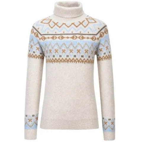 Le pull Dyanne est en tissu jacquard de haute qualité avec ces motifs coloré sur la partie supérieure et les poignets. Pull à col roulé avec le logo HV POLO sur le bas à gauche.