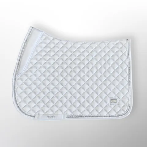 Tapis de selle en tissu satiné pour le saut d’obstacle, le dressage ou un usage au quotidien avec finitions en cordelette. Rembourrage au garrot pour la protection et réalisé dans une forme ergonomique pour permettre à votre cheval d’avoir le meilleur mouvement pour toutes les disciplines équestres. L’intérieur gris EQUICO est respirant, réduit la transpiration, sèche rapidement et aide à éviter les frottements pour votre cheval. Ce magnifique tapis de selle présente également des détails « équestres » brodés et le logo EQUICO.