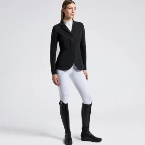 Veste de concours technique alliant style et fonctionnalité pour les cavalières exigeantes.