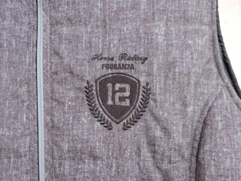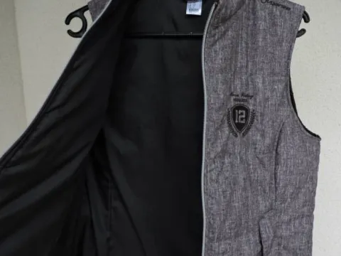 Bombeurs sans manche de mi-saison (printemps/automne), marque : Fouganza (Decathlon). Taille EU 42, couleur grise, très peu mie, très bon état.