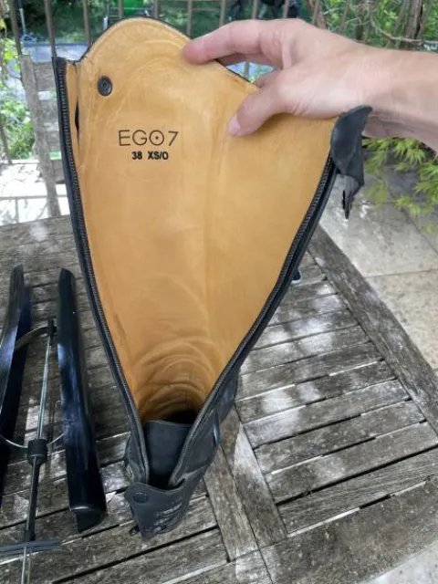 Bottes EGO 7 modèle ORION en taille 38 XS/O mollet 30 hauteur tige 45 cm en cuir noir , bon état .