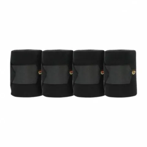 Nos bandes de repos (400 x 12 cm) sont conçues dans un tricot doux mais solide avec un mélange de laine acrylique qui offrent épaisseur et durabilité. Elles sont extrêmement respirantes et elles comportent une fermeture velcro robuste. Vendues en set de 4 dans une housse à fermeture éclair, elles sont lavables en machine à 30° (pas de sèche-linge). Ces bandes de repos forment une parfaite combinaison avec nos cotons américains aussi bien pour le repos que durant les transports. Elles peuvent être également utilisées avec nos sous-bandes de travail.