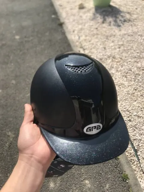 Je vend ma bombe gpa neuve, jamais porté car erreurs de commande. C’est un taille 54 gpa (55 cm). Je la vend avec la pochette et la boîte. Elle est noir mate avec la bande et la visière noir brillant (pailleté au soleil). Je la vend à 210€ au lieu de car elle est neuve.