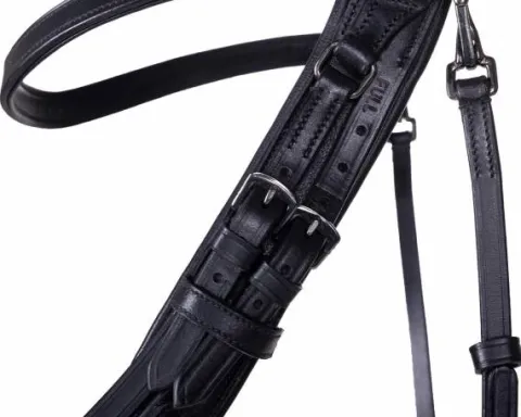 - La muserolle est placée suffisamment haut pour éviter la pointe de l’os nasal et est également rembourrée en gel