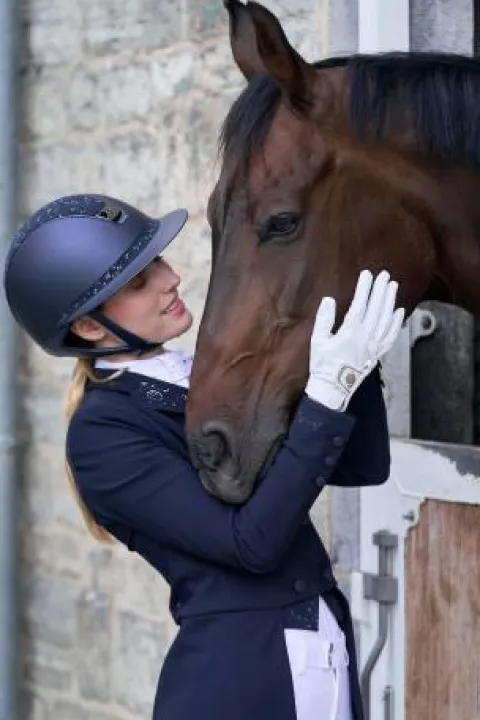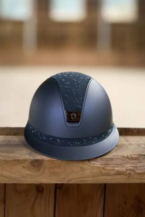 Casque Miss Shadowmatt bleu avec crystal Leaf bleu 5 swarovskis liseré bleu mat et blason chrome noir