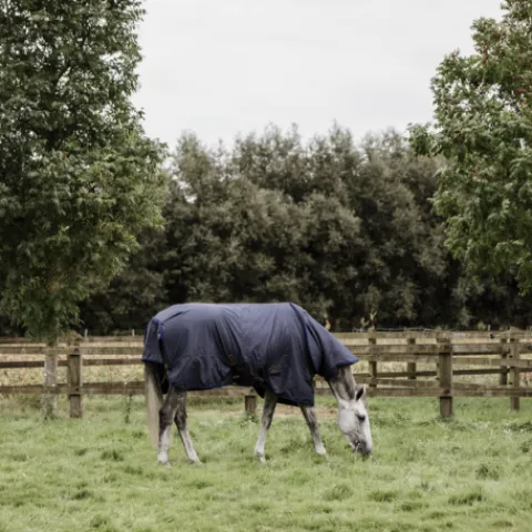 La couverture d’extérieur All Weather Hurricane est une couverture unique totalement hermétique à utiliser dans le paddock ou en prairie. La couverture garantit un cheval sec, même en cas d’averses violentes. Par conséquent, la couverture est parfaite pour les chevaux qui sont dehors 24 heures sur 24, 7 jours sur 7. La couverture est très résistante à la déchirure ou au grattage et reste 100% imperméable sans avoir à l’imperméabiliser de nouveau.