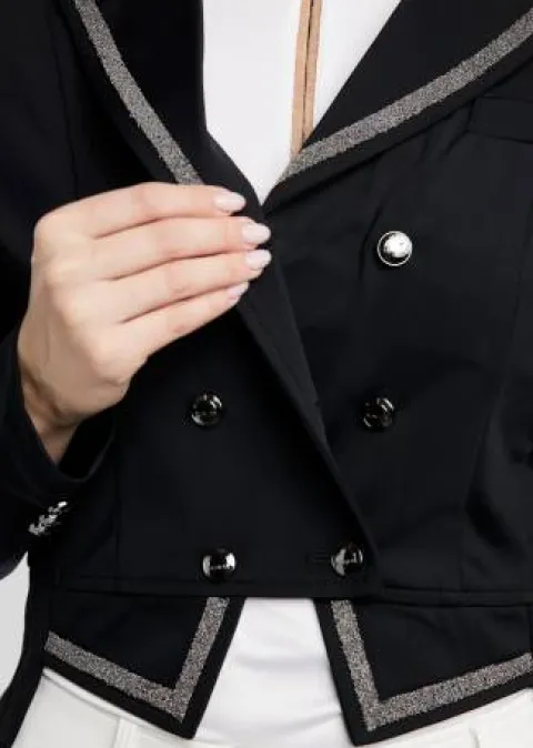 Le frac long de dressage Montar, orné de cristaux gun metal, est conçu pour offrir à la fois une allure chic et une performance optimale lors de vos compétitions.