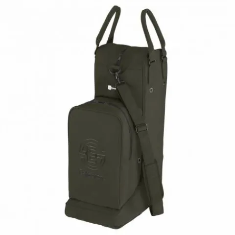 Sac à bottes et bombe en matière softshell deep green, conçu pour répondre aux besoins des cavaliers.