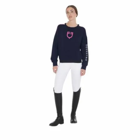 Sweat-shirt à col rond pour femme en coton polaire doux avec le logo Equestro imprimé sur la poitrine, pour un design polyvalent et fonctionnel. Poignes et épaules contrastées et bande élastique à la ceinture