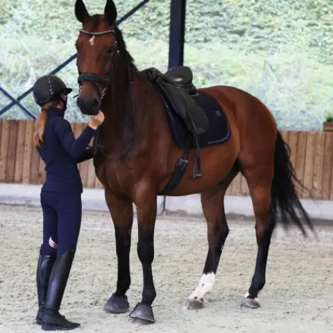 - Le tapis de selle Classico Equestre est conçu pour le dressage et offre un excellent amorti entre le dos du cheval et la selle tout en protégeant contre les frottements.