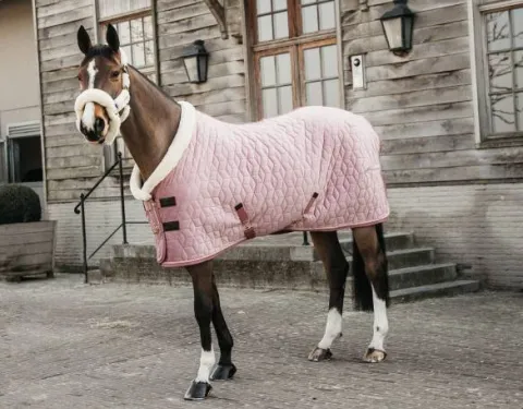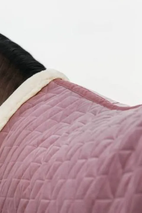Avec la couverture de présentation Velvet, vous vous distinguerez à coup sûr dans les écuries. La couverture a un rembourrage de 160g et est parfaite en hiver pour être utilisée comme couverture d’écurie à la maison ou sur les concours. L’extérieur de la couverture est composé d’un tissu en velours doux et chic et d’une couche matelassée sophistiquée. Grâce à la couche matelassée en « cube », il est beaucoup plus difficile pour les chevaux de déchirer la couverture. L’intérieur de la couverture est doublé d’une peau de lapin artificielle, qui évite les marques de frottement. La peau de lapin artificielle crée également de minuscules poches d’air qui créent une couche isolée autour de votre cheval et le maintiennent au chaud.