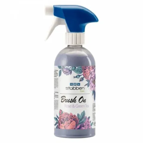 - Le démêlant Stübben « Brush on », à base de Rose and Green Tea, garantit un démélage rapide des crins, du lustre et du volume.
