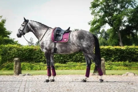- Bandes en matière polaire prune avec scratch satiné noir et logo equito