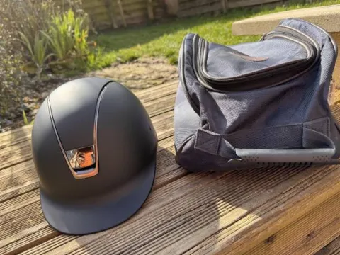 À vendre bombe samshield noire matte, taille M, utiliser – de 10fois. Jamais tombée