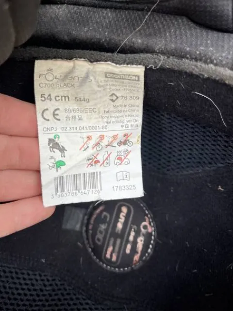 Je vends une bombe noire taille 54 de la marque fouganza.