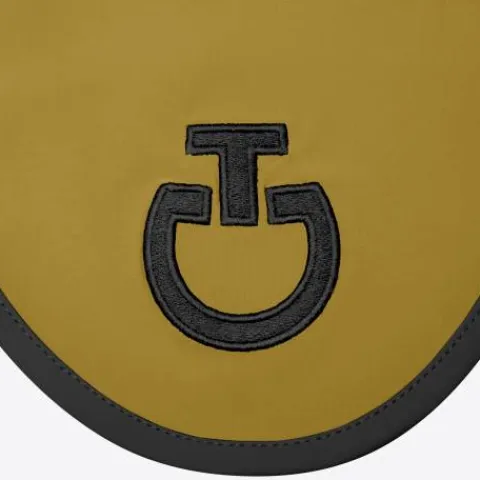 Il a une bordure contrastée et un logo brodé sur le devant. Il possède un crocher pour attacher à la muserolle et est plus long que les bonnets classiques.