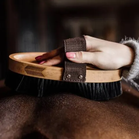 Les poils en son centre son plus souples, pour une meilleur action. Elle est idéale pour l’hiver, pour les chevaux avec un poil plus épais.