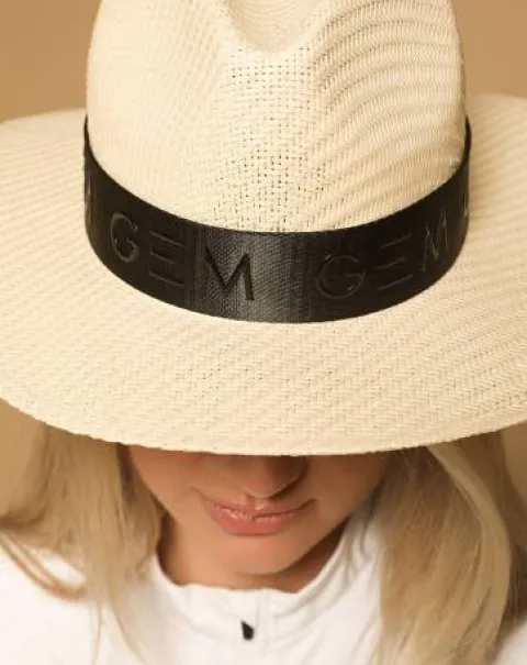 - Et vu la beauté de ce chapeau, on ne le quittera pas ! Large bande avec logos GEM en gomme, disponible en noir ou corail.