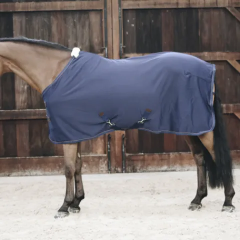 Cette chemise séchante polaire Kentucky Horsewear est idéale après le travail ou la douche de votre cheval. Cette chemise absorbe la sueur ou l’eau et fait en sorte que votre cheval ne prenne pas froid. Elle est dotée de deux sursangles amovibles qui sont positionnées à l’intérieur de la chemise, de sorte qu’elle puisse également être utilisée comme une couverture de présentation. Le passepoil en cuir fantaisie, la peau de mouton artificielle au garrot et les élégantes fermetures à l’avant confèrent un aspect luxueux à cette chemise séchante polaire. Elle deux anneaux en D et une sangle en nylon pour passer sous la queue. Elle se lave en machine à 30 °, pas de sèche-linge.