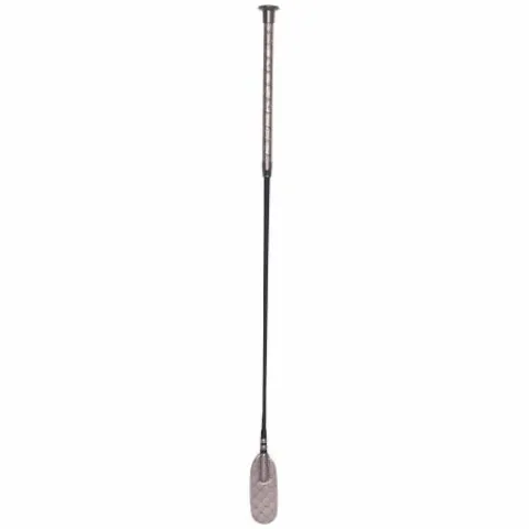 Cravache de saut élégante avec poignée et claquette avec le motif en relief Welmoed en matériau PU métallique.