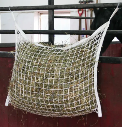 - Ce filet à foin robuste permet aux chevaux de manger très lentement, grâce aux petites ouvertures (3cm*3cm), ce qui diminue la consommation et le foin dure 2 à 3 fois plus longtemps au rythme d’un cheval qui broute.