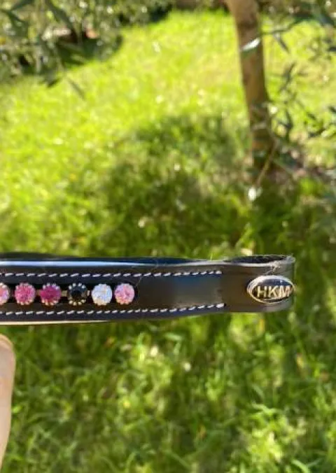 Je vends un frontal HKM strass rose, noir taille cheval.