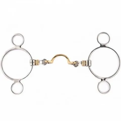 - Conseil d’utilisation : Ce mors peut être utilisé avec des rênes attachées de manière fixe sur l’anneau du bas, avec des alliances ou avec deux paires de rênes. Le grand passage de langue permet d’avoir un cheval plus canalisé dans la bouche, qui placera mieux sa langue, respirera mieux et sera plus concentré dans le travail