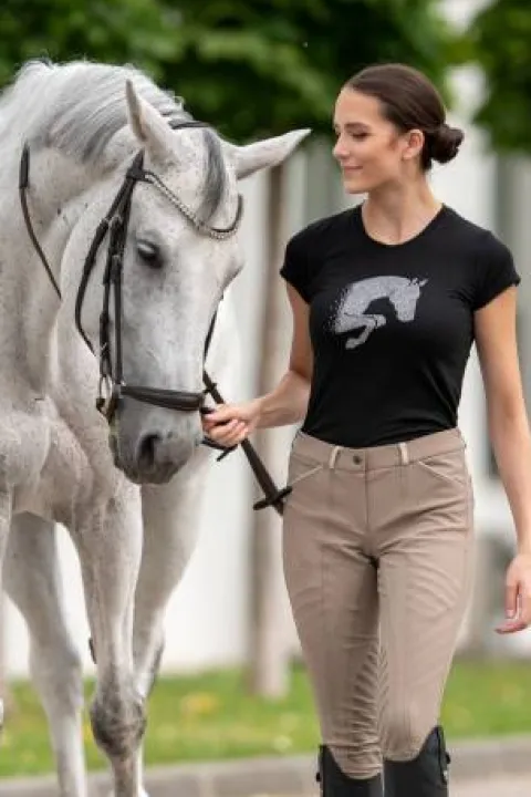 Ce haut d’équitation en coton allie confort et élégance pour les amateurs de chevaux. Sa coupe flatteuse et son design raffiné en font un choix idéal pour se sentir bien tout en affichant sa passion pour l’équitation.