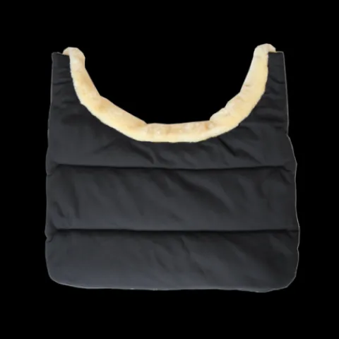 Le BIB étant en contact direct avec la peau du cheval, il est recouvert d’une peau de lapin artificielle. Ce matériau très doux offre une sensation de confort extrême. Une peau de mouton artificielle est cousu au bord du Winter BIB pour empêcher le frottement au niveau de l’encolure et offrir encore plus de confort. Le tissu extérieur du BIB est 100% polyester. Non seulement il empêche le frottement mais il égalise aussi la pression que la couverture exerce sur le poitrail du cheval. Le BIB peut également être utilisé de la même manière pour protéger le garrot et s’adapte à tous types de couvertures.